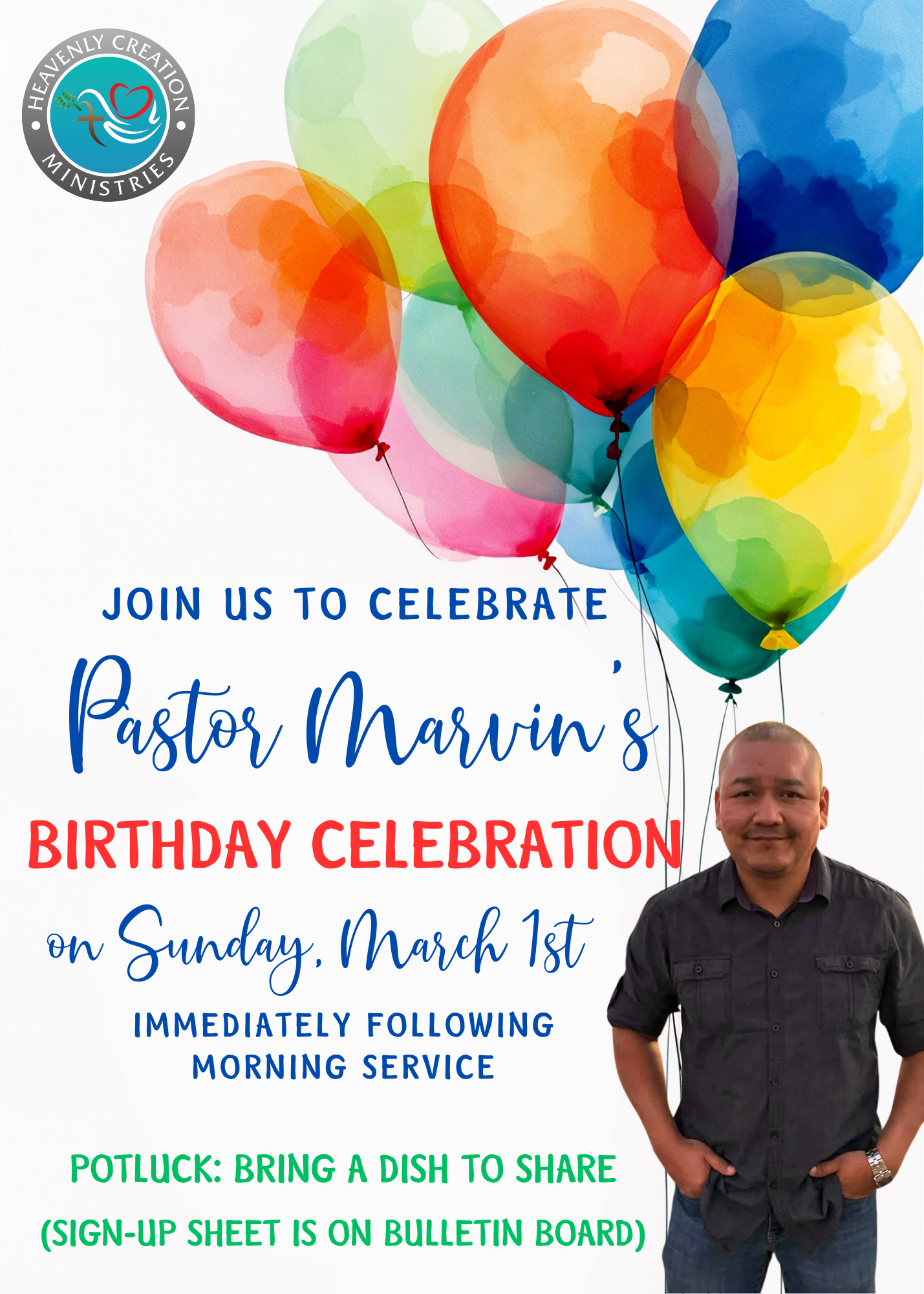 Join us after Sunday service to celebrate pastor Marvin Tsosie birthday potluck celebration.